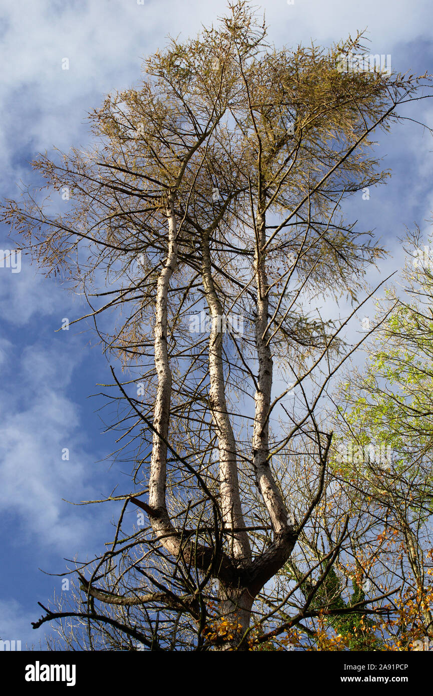 11 North American A dead branch caught precariously high in a tree which may fall on a person below. Other times the trees dry out and lose water pressure in the trunk or branches and so they lose their strength. HEnglish - advanced version.